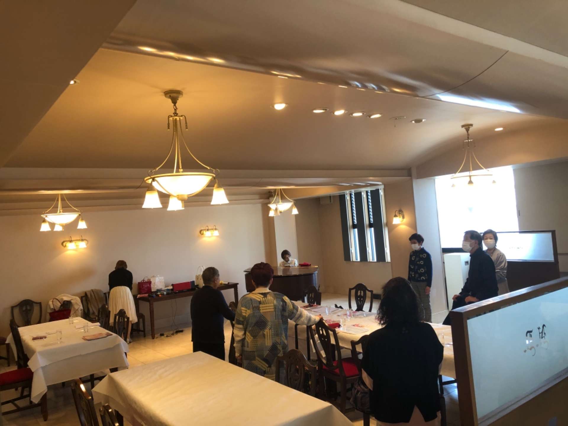 広々した綺麗な会場で体操して体をほぐした後、ピアノの発声で喉を慣らして、懐かしの童謡唱歌や昭和ポップスなど皆でのびのびと歌いました。